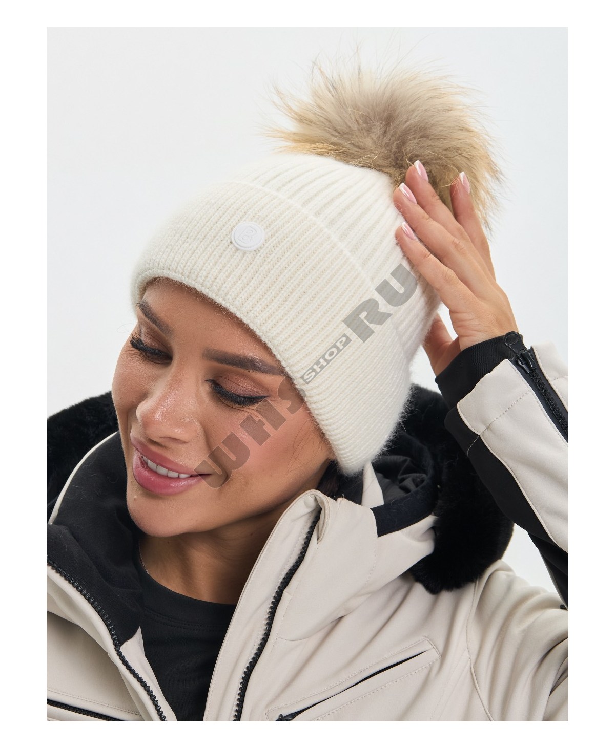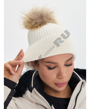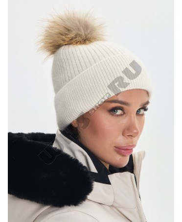 Женская люксовая зимняя шапка BOGNER art: 927 Белая с мехом